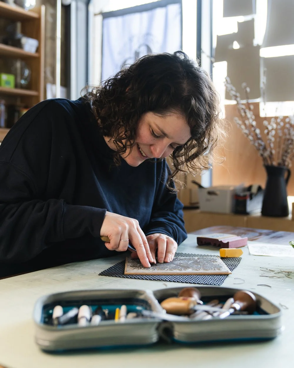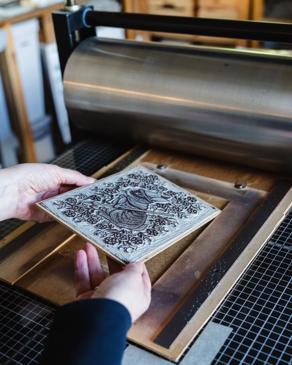 I previously worked at Handprinted in Bognor Regis; providing studio assistance in several printmaking techniques, group teaching and one-to-one tuition. Since taking on my own studio in 2023, I’ve been teaching regular workshops in my specialism of linocut. I also teach externally for other organisations and provide print demonstrations at events.