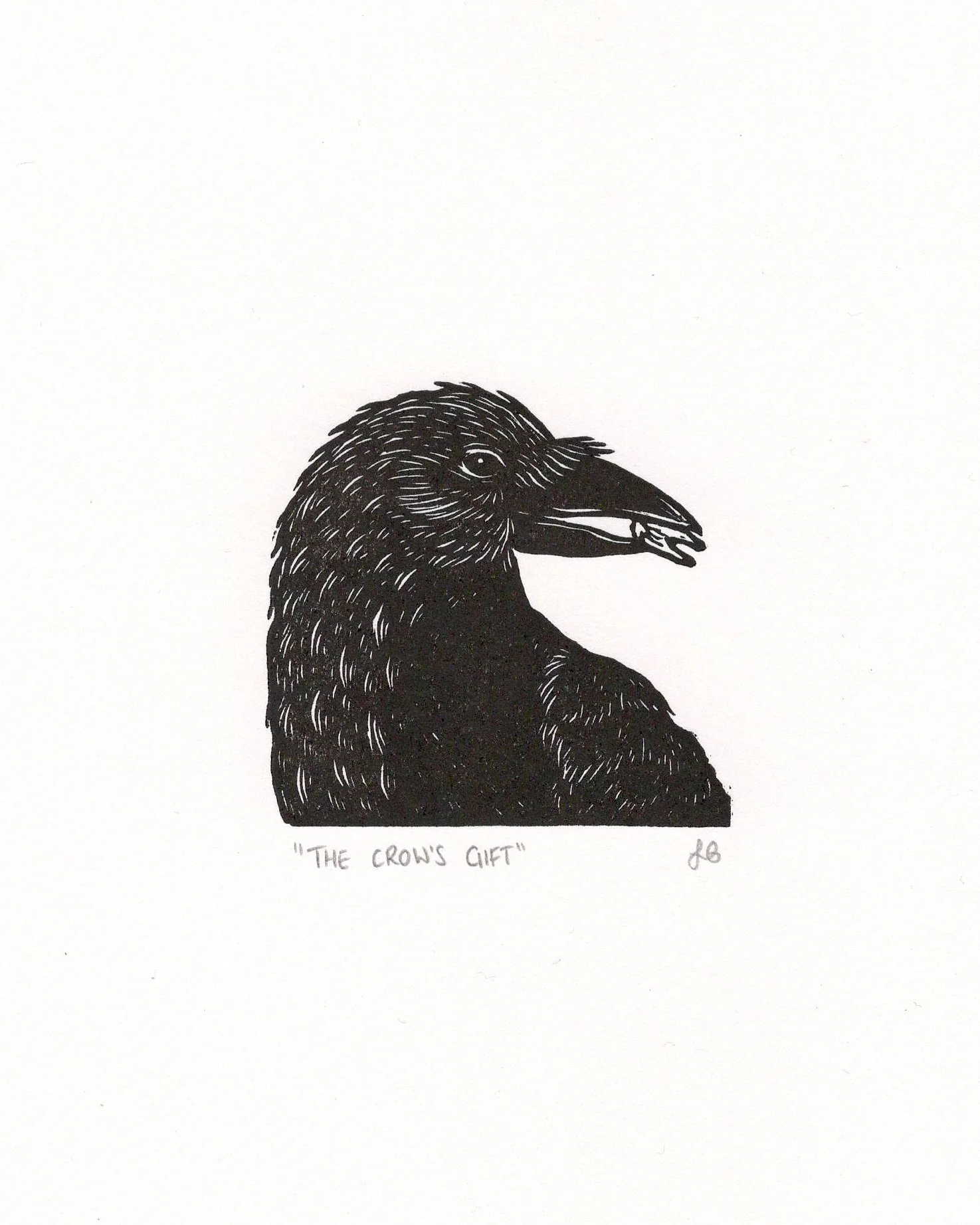 ‘The Crow’s Gift’ is printed using artist quality oil-based ink, made from linseed oil using lightfast pigments and without solvents. The paper is off-white, wood-free, acid free archival paper. Using artist grade materials ensures longevity of the artwork.